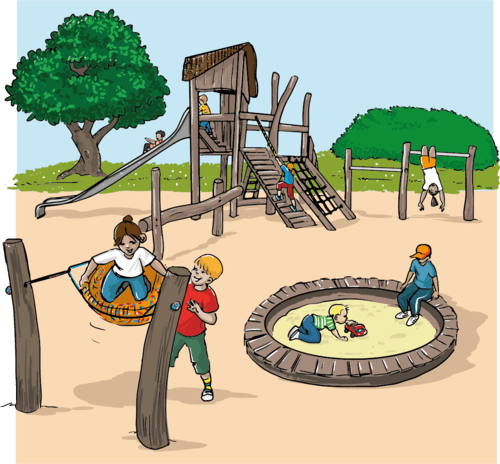 Ein Ort, an dem draußen an verschiedenen Geräten gespielt werden kann.