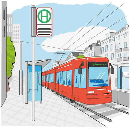Ort, an dem die Straßenbahn anhält und man ein- und aussteigen kann.